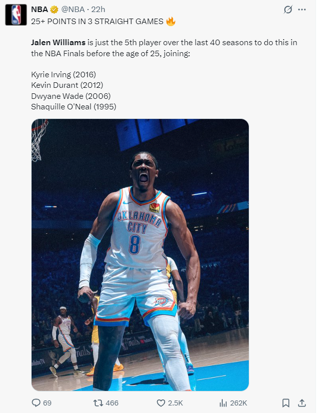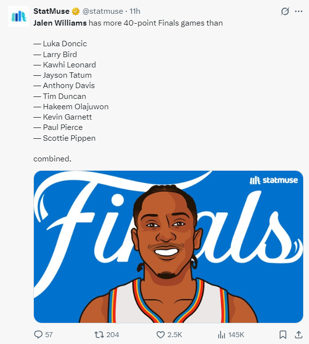 6.杰威与SGA也是雷霆队史首对总决赛30+组合;
